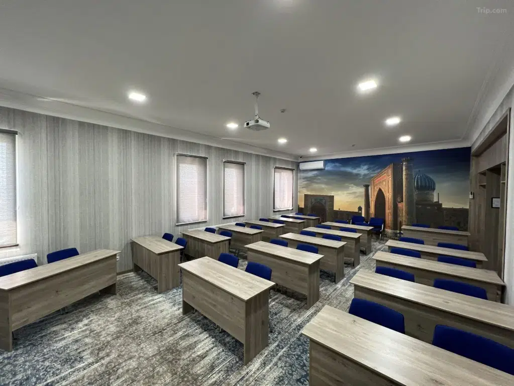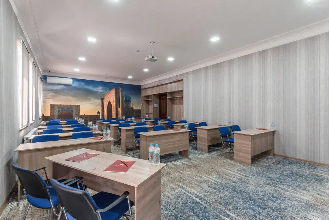 Для проведения мероприятий и бизнес- встреч отель предлагает своим гостям конференц-зал, расположенный на минус первом этаже гостиницы